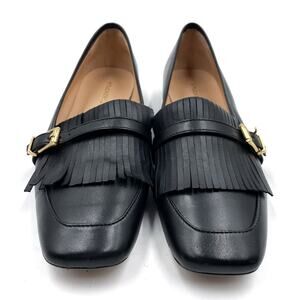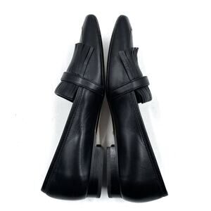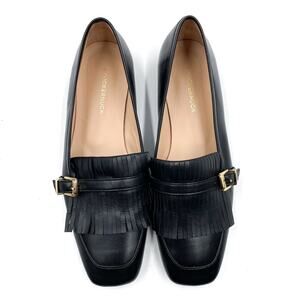 Tuckernuck Loafers Black Leather Kiltie Fringe Buckle Square Toe Slip On Sz 6