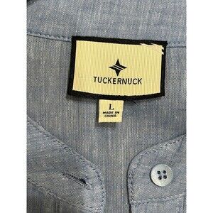 The Tuckernuck Lydell Button Front Maxi Dress in size L is a stylish and versatile piece perfect for a beachy coastal look. The dress features a solid chambray color with a round neckline and long sleeves, accented with pleats and a button closure. Made from a blend of linen and cotton, it is designed for hand wash care and includes pockets for added convenience. Ideal for various occasions such as travel, parties, or casual outings, this dress embodies a resort wear vibe that is both relaxed and chic. Whether you're heading to the beach or a summer wedding, this dress is a must-have for your wardrobe.
