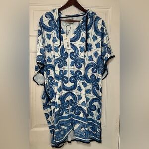 Tuckernuck Majolica Terrycloth Swim Beach Coverup Blue & White M/L NWT.