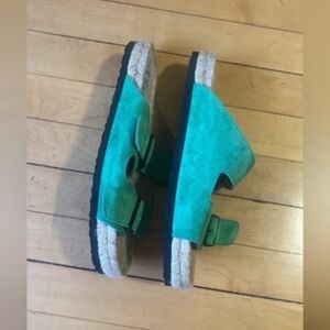 Size 41 Tuckernuck brand Manebi Nordic Suede style green sandals. According to the size chart they are equal to a US 11. Great like new condition, these are a bright green versus the mint currently available on the website. Espadrille style, great quality and condition, perfect for spring and summer! Smoke free home