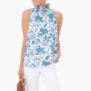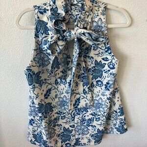 Tuckernuck Mason Blue Floral Chintz High Ruffle Neck Blouse with Tie Back