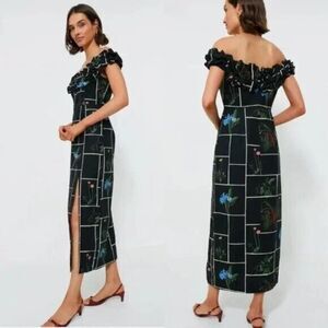 Tuckernuck NEW Black Fresher Buds Suze Floral Patchwork Denim Maxi Dress Size 6