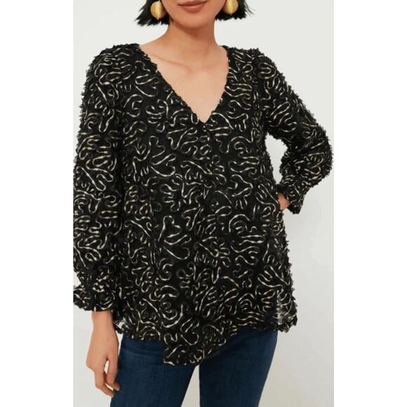 Tuckernuck NWT Nightly Organza Easton Black Gold Blouse Size Large