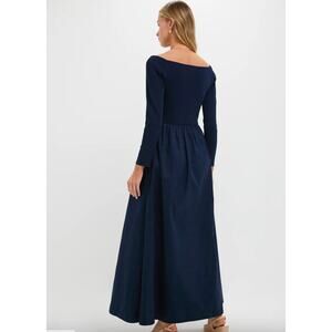 The Clea Dress is a stunning event gown with an off-the-shoulder neckline, a flattering fit-and-flare silhouette, and a mixed-media design. We are styling it with neutral heels and a clutch for date nights, dinner parties, and evening weddings.