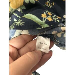 Tuckernuck Navy & Yellow Floral Button-Down Blouse Size Small 100% Cotton
