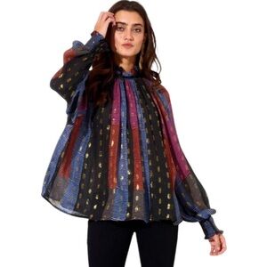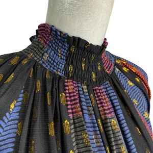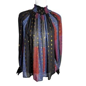 Tuckernuck OLIPHANT High Neck Peasant Top Blouse with Metallic Dots Black Size S