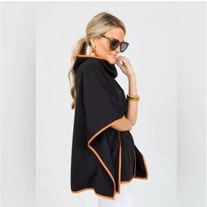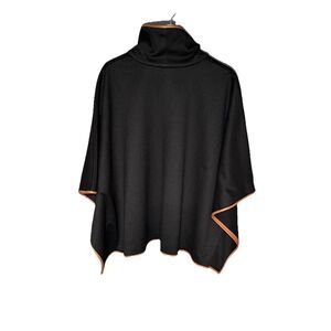 Tuckernuck One Size Black Leather Trim Funnel Neck Piper Poncho