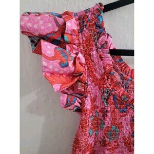 Tuckernuck Pink Floral Smocked Dress Ruffle Sleeve Tiered Midi Cotton XL