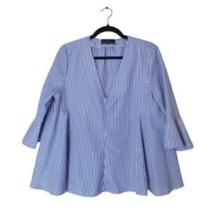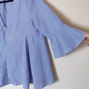 Tuckernuck Pomander Place Addie Blue Stripe 3/4 Bell Sleeve Blouse Medium Preppy