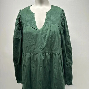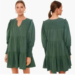 Tuckernuck Pomander Place Ceci Smocked Dress Tiered Long Sleeve Jaguar Green XS