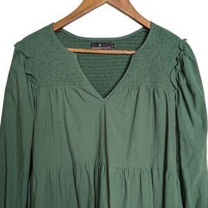 Tuckernuck Pomander Place Ceci Smocked Tiered Dress Medium Jaguar Green L/S