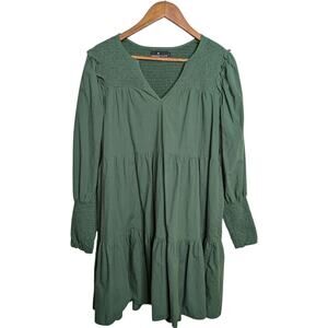 Tuckernuck Pomander Place Ceci Smocked Tiered Dress Medium Jaguar Green Long Sleeve