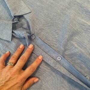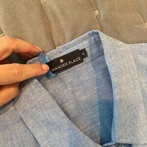 This lovely Pomander Place Chambray Kayla dress size XL is button front with short gathered sleeve. Freshly dry cleaned.