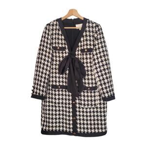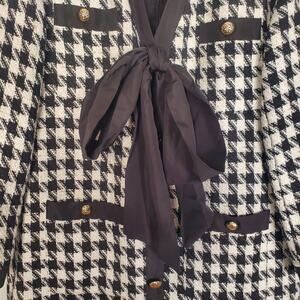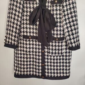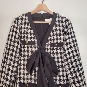Tuckernuck Pomander Place Coco Tweed Bow Dress Houndstooth Black White Long Sleeve Size Medium
