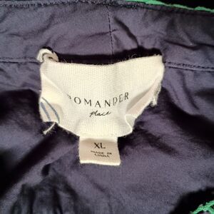 The Tuckernuck Pomander Place Dress is a beautiful blue short sleeve dress made from 100% cotton, perfect for the summer, fall, and spring seasons. It features a V-neck, ruffle accents, and stitching details, making it ideal for casual or travel occasions. The dress has a pullover closure and includes pockets for added convenience. With a tiered knee length and a mini shirt dress style, this dress is a stylish and comfortable choice for women in size XL. Hand wash only to maintain its quality, this dress is a colorful and preppy addition to any wardrobe. Pit to Pit: 26", Length: 35"