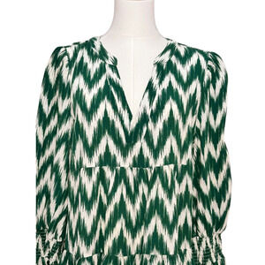 Tuckernuck Pomander Place Green White Ikat Kenzo Tiered Swing Dress XL Boho