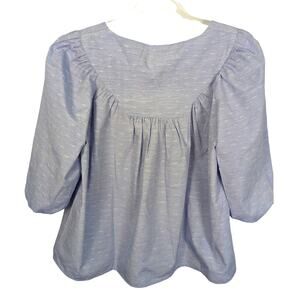 Tuckernuck Pomander Place Chambray Inara Blouse 3/4 Puff Sleeve Blue NWT Small
