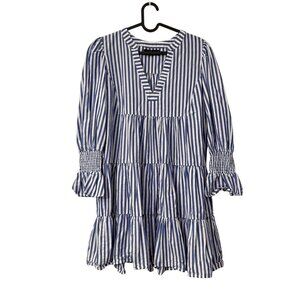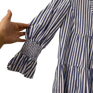 Tuckernuck Pomander Place Kenzo Blue Striped Vneck Smocked Cuff Dress Small