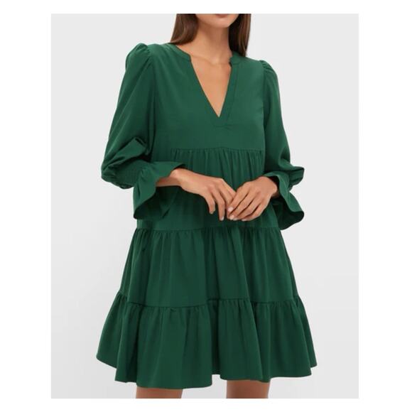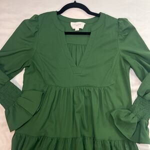 Tuckernuck Pomander Place Kenzo Dress Size S Hunter Green Crepe V Neck Tiered