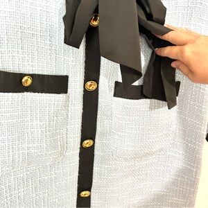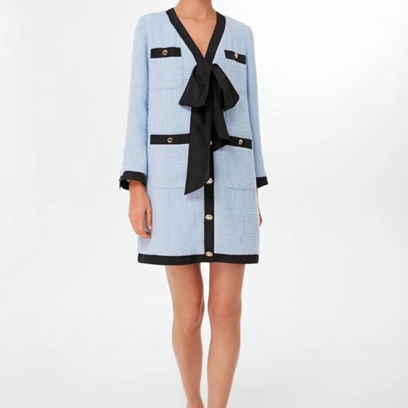 Tuckernuck Pomander Place Light Blue Coco Tweed Bow Dress SIZE MEDIUM