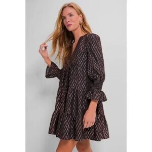 Featuring feminine flutter smocked cuffs, a V-neckline, and a loose empire waist, the Metallic Ikat Kenzo Dress is the most flattering flirty frock! Pair with flats for a casual look or dress up with heels and statement earrings for holiday festivities.