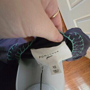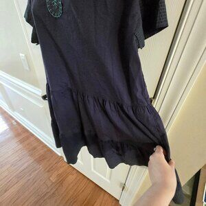 Tuckernuck Pomander Place Navy Kinsley Dress Size XS - excellent preowned condition, minimal wear, almost like new. Navy blue dark blue adorable mini above the knee length dress. Everyday wear - casual, work attire, or formal. Short oversized sleeves, v-neckline, tiered skirt. A-line silhouette pullover dress. Elevated with stitched detailing along the neckline in green thread on neckline, sleeves, and hem. Whipstitching v-neckline. Trapunto stitching along sleeves and hem. Material: 100% cotton. Hand wash cold, hang to dry.