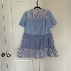 Tuckernuck Pomander Place Quinn Light Blue Striped Tiered Babydoll Dress. Size Medium