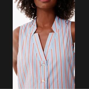 Pockets, a button down front, side slits, and a fun blue, red and pink stripe print- the Lara Dress is filled with details but still plays well as a simple midi length frock ready to be accessorized. Styled for warm weather with sandals and sunnies and layered under a cardigan when the air turns crisp, this multi-seasonal staple is sure to be worn on repeat.