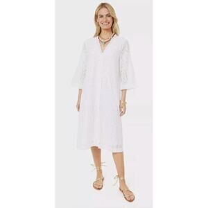 Tuckernuck Provincial Eyelet Cote D’Azur White Caftan Midi Dress Coverup Med