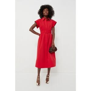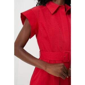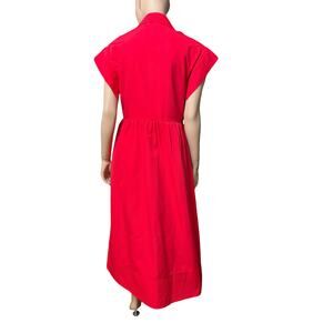 Tuckernuck Red Chloe Dress Size L Spread Collar Short Wing Sleeves Side Pockets