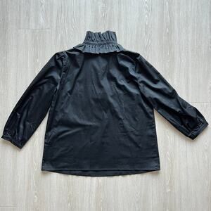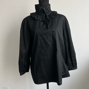 Tuckernuck Ruffle Neck Bouvier Blouse Large Black Preppy