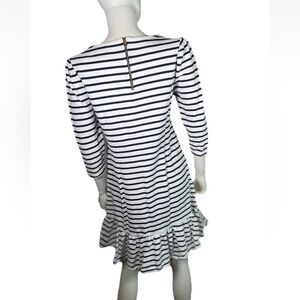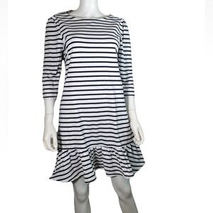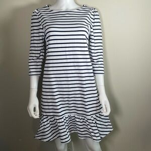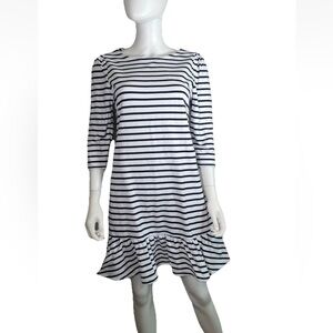 Tuckernuck Sail To Sable NAUTICAL Navy Striped French Terry Dress ruffle hem S