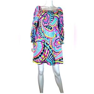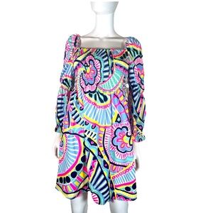 Tuckernuck Sail to Sable Kaleidoscope Print Smocked Nap Dress Sz S Long Sleeve