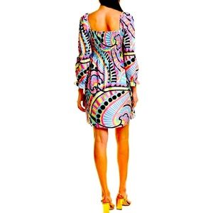 Tuckernuck Sail to Sable Kaleidoscope Print Smocked Nap Dress Sz S Long Sleeve Colorful New
