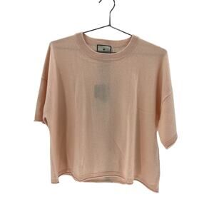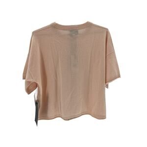 Tuckernuck Short Sleeve 'Lila' Pink Cashmere Sweater Size M: crew neck, dropped shoulders, short sleeves, relaxed, boxy fit, measurements: 23 inch bust x 20 inch length.