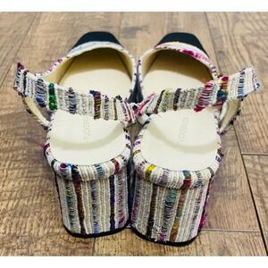 Keywords: Tuckernuck, slingback heels, cap toe shoes, striped heels, block heel, womens shoes, dress shoes, party shoes, multicolor shoes, size 10, contemporary, stylish heels, comfortable heels, casual heels, work heels