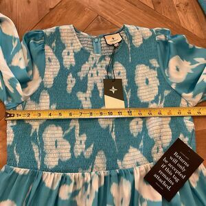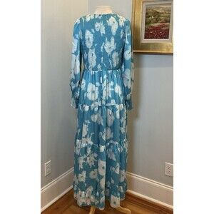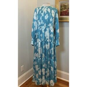 Tuckernuck Smocked Maxi Dress XXL Blue White Floral Tiered Long Sleeve NWT