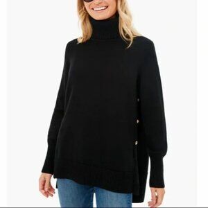 Features: gold crest buttons on the adjustable side seams, a luxurious foldover neck and a high-low hem for extra coverage create the perfect combination of style and sophistication. Fold over turtleneck. Button down side seams. Gold crest buttons. High-low hem
