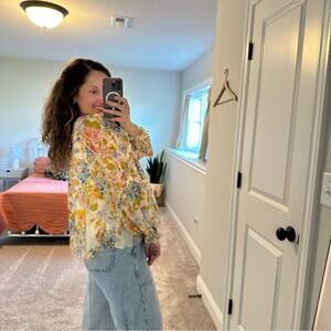 I love this super stunning designer Tuckernuck Sugarlips cream floral printed long sleeve blouse/top