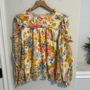 Tuckernuck Sugarlips Cream Pink Blue Floral Ruffled Blouse Top Small