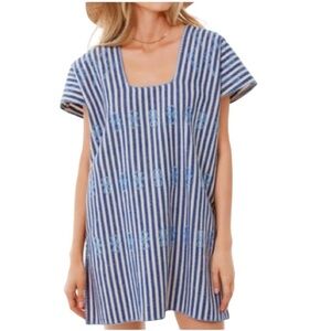 Tuckernuck Sullivan Cotton Striped Embroidered Caftan Vacation Swim Cover Up Womens Small