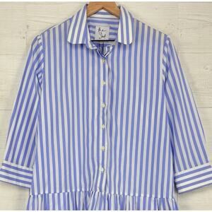 Tuckernuck The Shirt by Rochelle Behrens L Drop Waist Shirt Dress Striped Blue
