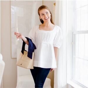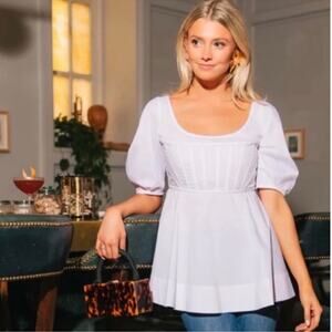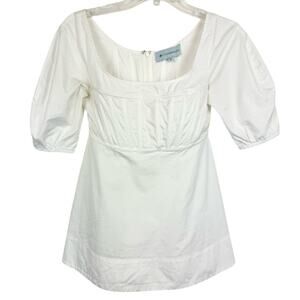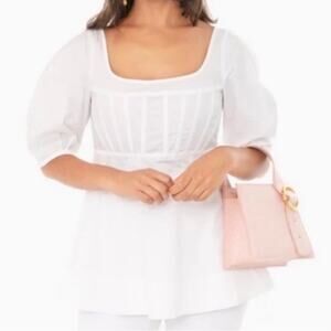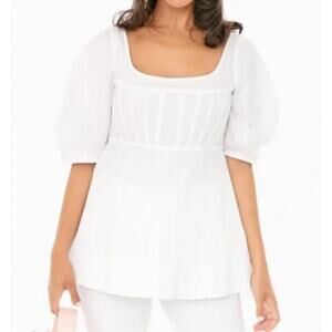 Tuckernuck White Nealy Scoop Neck Puff Sleeve Peplum Blouse With Boning Size XS