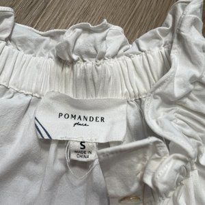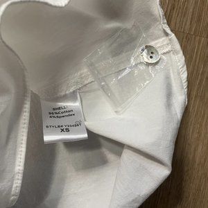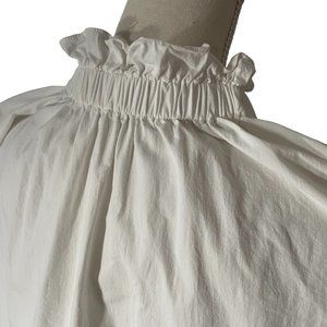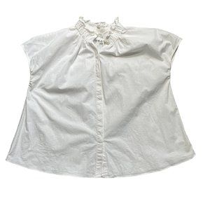 Elegant white blouse with ruffle neck. Short sleeves. Perfect for any occasion.