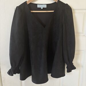 Tuckernuck Women Easton Blouse Top Size Med Suede Peasant Preppy Boho Black City