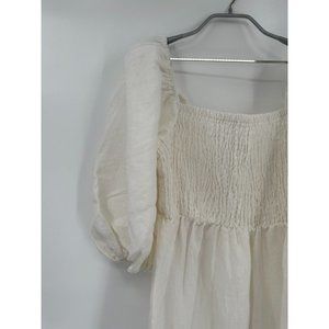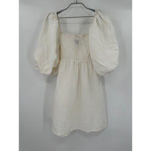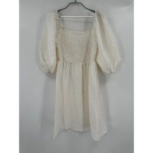 Tuckernuck Women's Annie Smocked Mini Dress Linen Puff Sleeve White sz L NEW