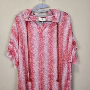 Tuckernuck Womens Beach Coverup Maxi Hood Slit Cotton Pink Coral Long Vacation M