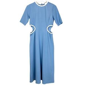 Tuckernuck Zeppelin Midi Dress Cut Outs Newport Blue White Braid Neck Medium