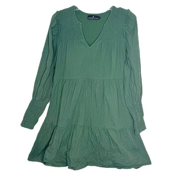 Tuckernuck Pomander Place Green Ceci Smocked Tiered Mini Dress Women’s Size M