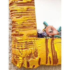 Hand Made Beaded Santa Fe Mirror Gold Yellow Hand Painted Sedona Arizona Colorful Square Wall; may be some gems or jewels missing. Not in perfect condition